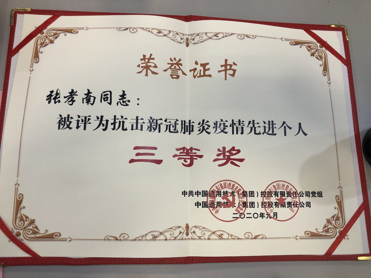 總經(jīng)理張孝南、副總經(jīng)理劉東生榮獲通用技術(shù)集團(tuán) 抗擊新冠肺炎疫情先進(jìn)個人